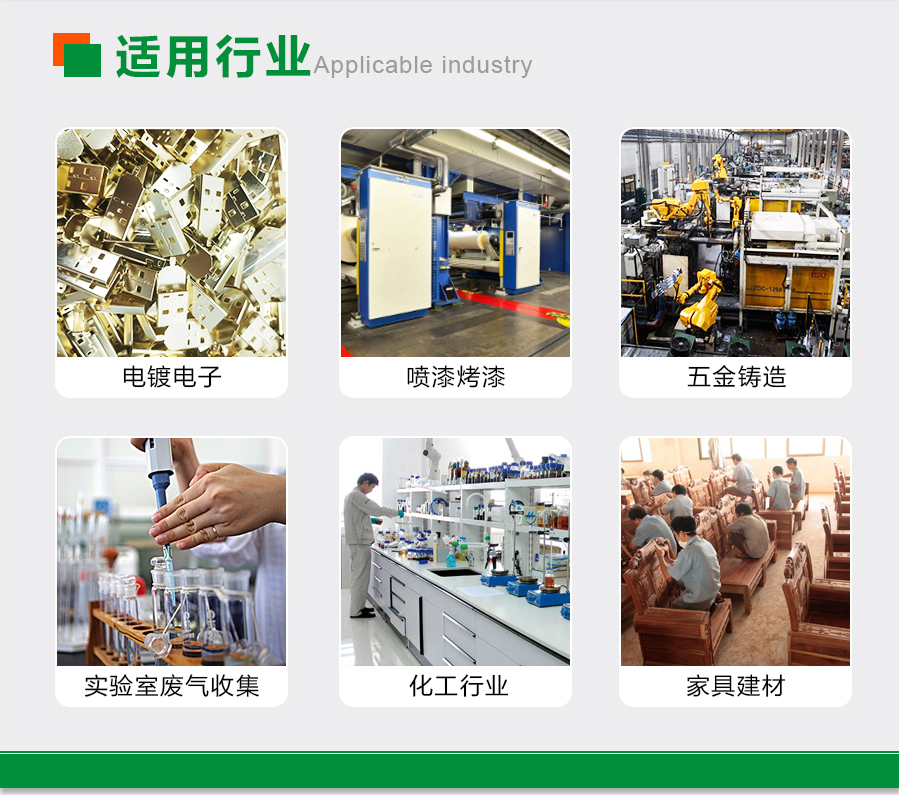 五金、噴漆、切割、半導(dǎo)體、冶金等行業(yè)生產(chǎn)過程中產(chǎn)生的含塵含味氣體,特別適合粉塵、廢氣等濃度大、溫度大、濕度大、易燃、易爆等工況。